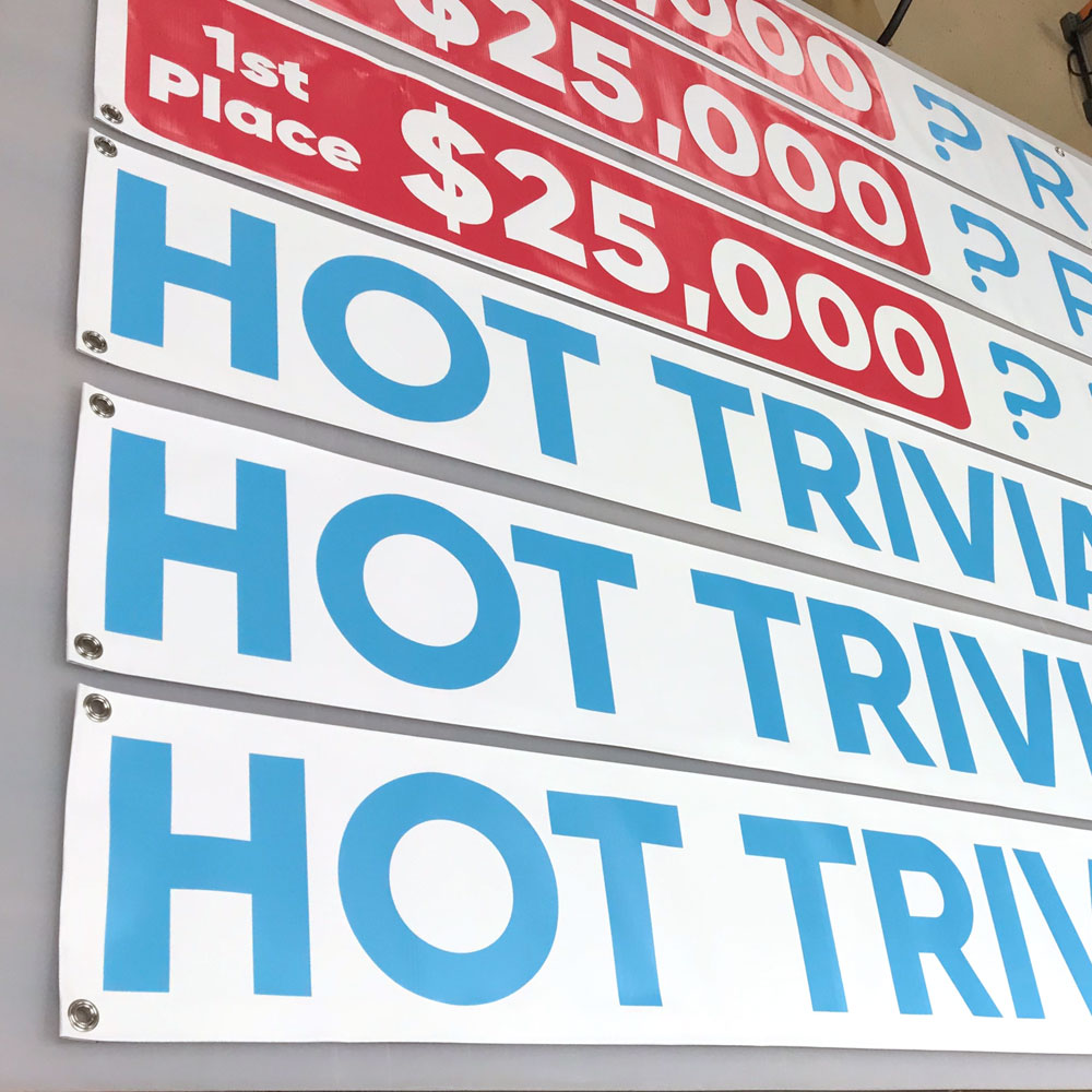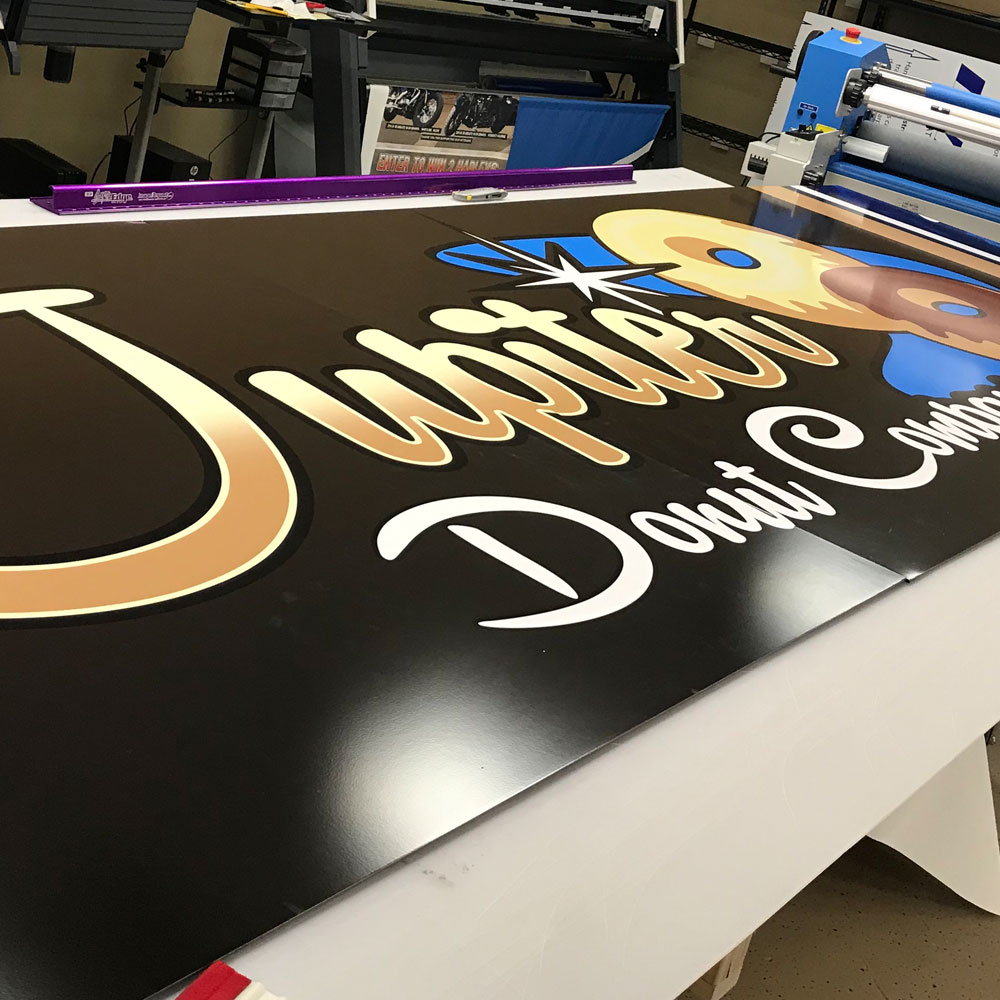 Get the latest, most innovative signs available with a partner you can trust. Our creative ideas and state-of-the-art technology enable us to produce high-quality products quickly and within your budget. Whether you want one poster, a dozen banners, or thousands of business signs, (Banners, A-Boards, Restaurant Wall Menus, Window Signs, Wall wraps, Yard signs, Interior and exterior directional signs, Custom Acrylics, etc.), we have what it takes to complete your project whenever you need it.